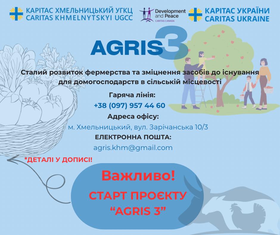 ℹ️ Проєкт #AGRIS3 реалізується Карітас Хмельницький УГКЦ у партнерстві з Caritas Ukraine