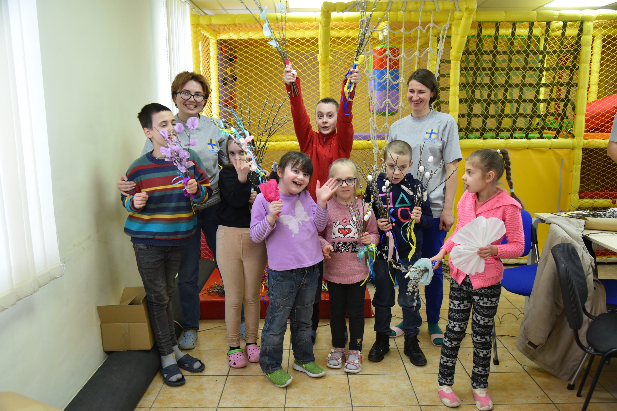 На спільному майстер-класі діток і батьків прикрашали вербові гілочки до благодійного ярмарку, який відбудеться на території Храму Різдва Пресвятої Богородиці УГКЦ, Кам’янець-Подільської Єпархії в неділю, 9 квітня.