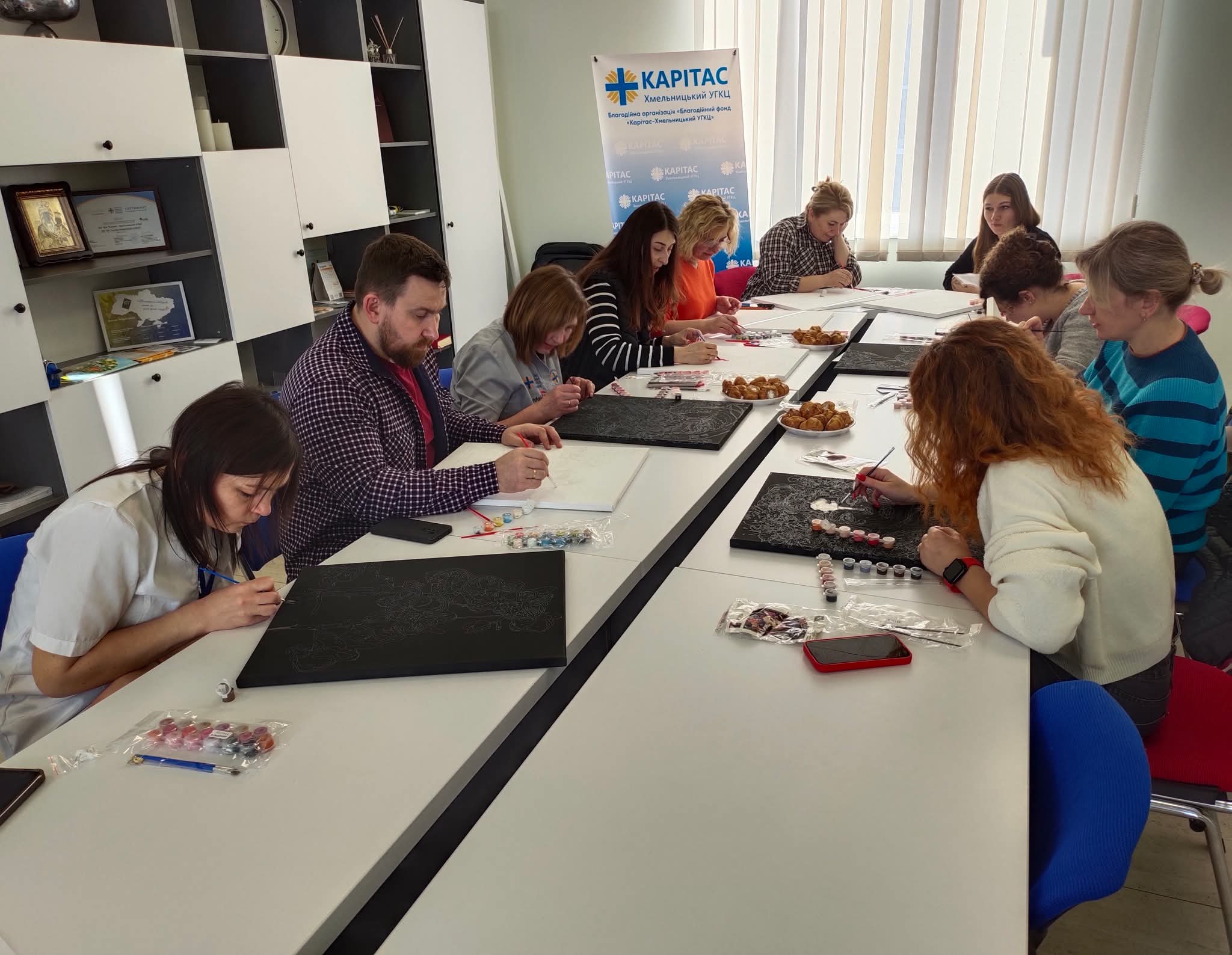 Аби зберегти внутрішній ресурс та підтримати ментальне здоров’я команди, ми провели особливу психологічно відновлювальну зустріч, присвячену арт-терапії. Цього разу ми обрали малювання картин-антистрес. Такі заняття допомагають скинути тягар щоденного стресу; повернути відчуття контролю через колір таформу, відчути підтримку колег у неформальній, творчій атмосфері.