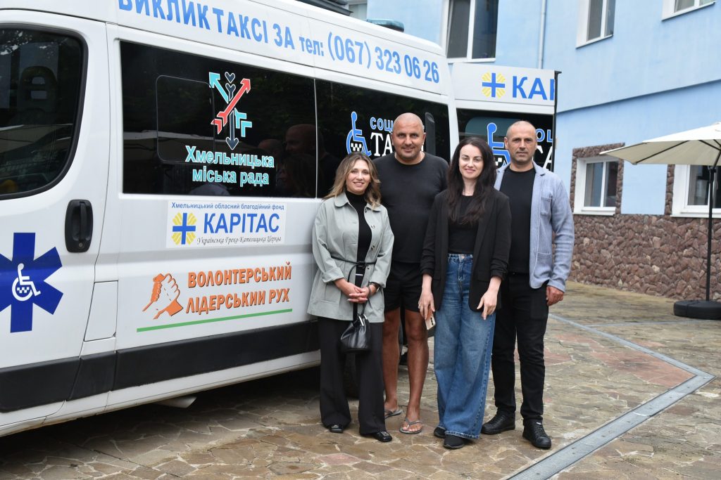 Соціальне таксі у Хмельницькому працює завдяки співпраці Карітасу, бізнесу і влади. Це синергія трьох для розвитку всієї громади. Адже усі шість автомобілів, починаючи із 2016 року, закуплені завдяки зусиллям соціально відповідального бізнесу, який об’єднався у Волонтерський лідерський рух. Організовує послугу та забезпечує усі процеси БФ «Карітас Хмельницький УГКЦ», а фінансується послуга з бюджету Хмельницької громади.