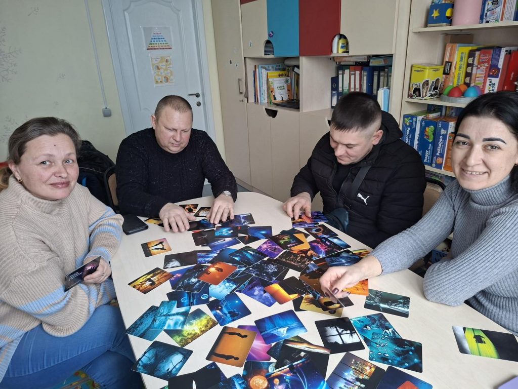 З метою допомогти віднайти внутрішні сили Соціальний центр для дітей та молоді з особливими потребами провів зустріч-пошук потенціалу для відновлення. Її організували для батьків, чиї діти відвідують наш центр. У теплій та довірливій атмосфері вони поспілкувались з психологинею проєкту Інною Трач, працювали з асоціативними картками та виконували творчі вправи.