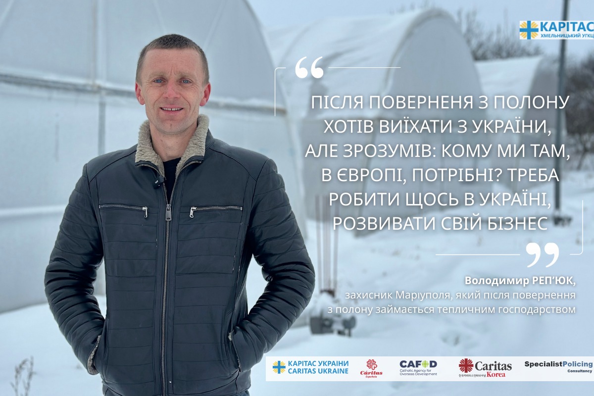 «Спочатку я планував відкрити свою СТО у Хмельницькому. Але потім зрозумів, що не знайду чоловіків, які будуть працювати. Тому вирішив все-таки — теплиці. Знайшов постачальників, закупив теплиці. Почав шукати можливості від різних організації й так мене познайомили з Карітасом», — розповідає захисник Маріуполя.