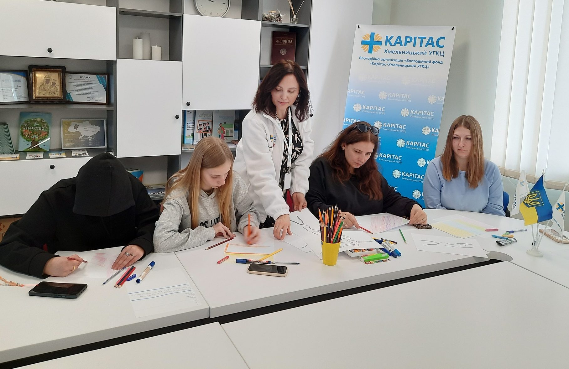 Групове заняття для доглядальників, дружин, родичів ветеранів, військових провела психологиня Іванна Іваневич. Цього разу вони навчались відпускати напругу через колір та форму, розвантажували емоції, навчались технікам стабілізації та стресостійкості.